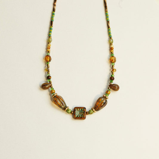 Antieke kralenketting van Tsjechisch glas met smaragdgroene accenten