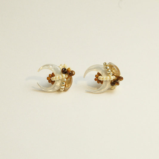 Maanvormige kraaltjes oorbellen van parelmoer en Tsjechisch glas