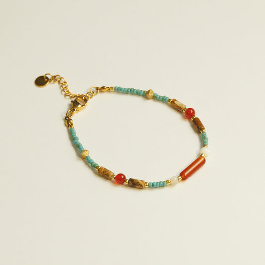 Handgemaakte turkoois zirkonia kralenarmband met agaat en schelp