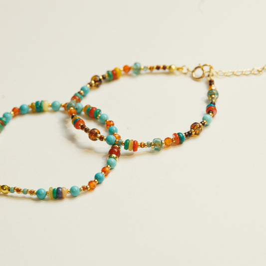 Onze nieuwste armbanden zijn met de hand samengesteld in kleine oplage en bevatten glazen kralen in karakteristieke kleurcombinaties zoals antique, blauwe, driekleurig, crémekleurig, geel-groene en Turquoise tinten. Deze kleuren geven onze sieraden een frisse maar tijdloze uitstraling. Of je nu kiest voor een ingetogen armband of juist een gekleurde kralen armbandjes die opvalt — je draagt altijd iets unieks.