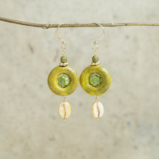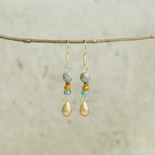 Handgemaakte Gouden Tsjechische Glaskralen Oorbellen