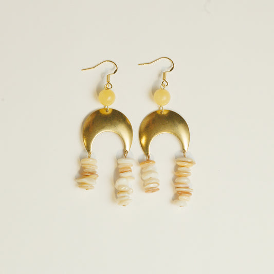 Daarnaast gebruiken we bijzondere accenten zoals nepalese glaskralen, messing houten elementen, messing maanvormen, drie-oog dzi, chalcedoon, chrysoberyl lantaan, en zachte tonen zoals ember en patel. Dit geeft de collectie een rijke textuur, met contrast tussen oud en nieuw, organisch en verfijnd.