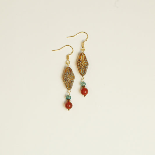 Handgemaakte Rode Agaat Tsjechische Glaskralen Oorbellen