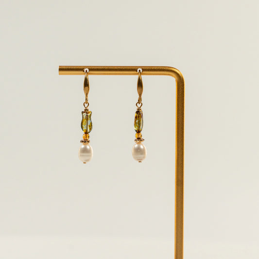 Parel oorbellen met visvormige kraal