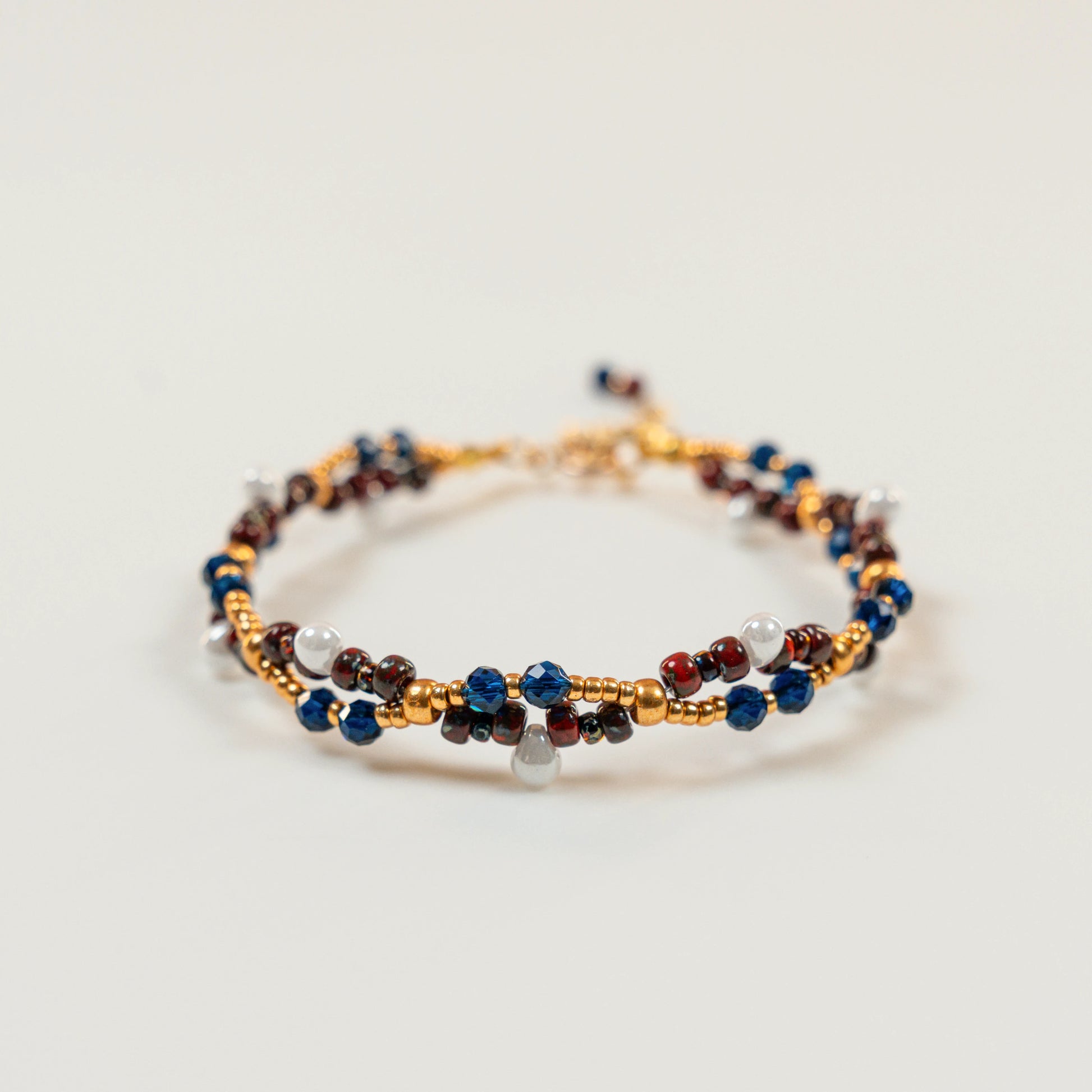 Materials: Czech glass beads, Miyuki seed beads, lapis lazuli.