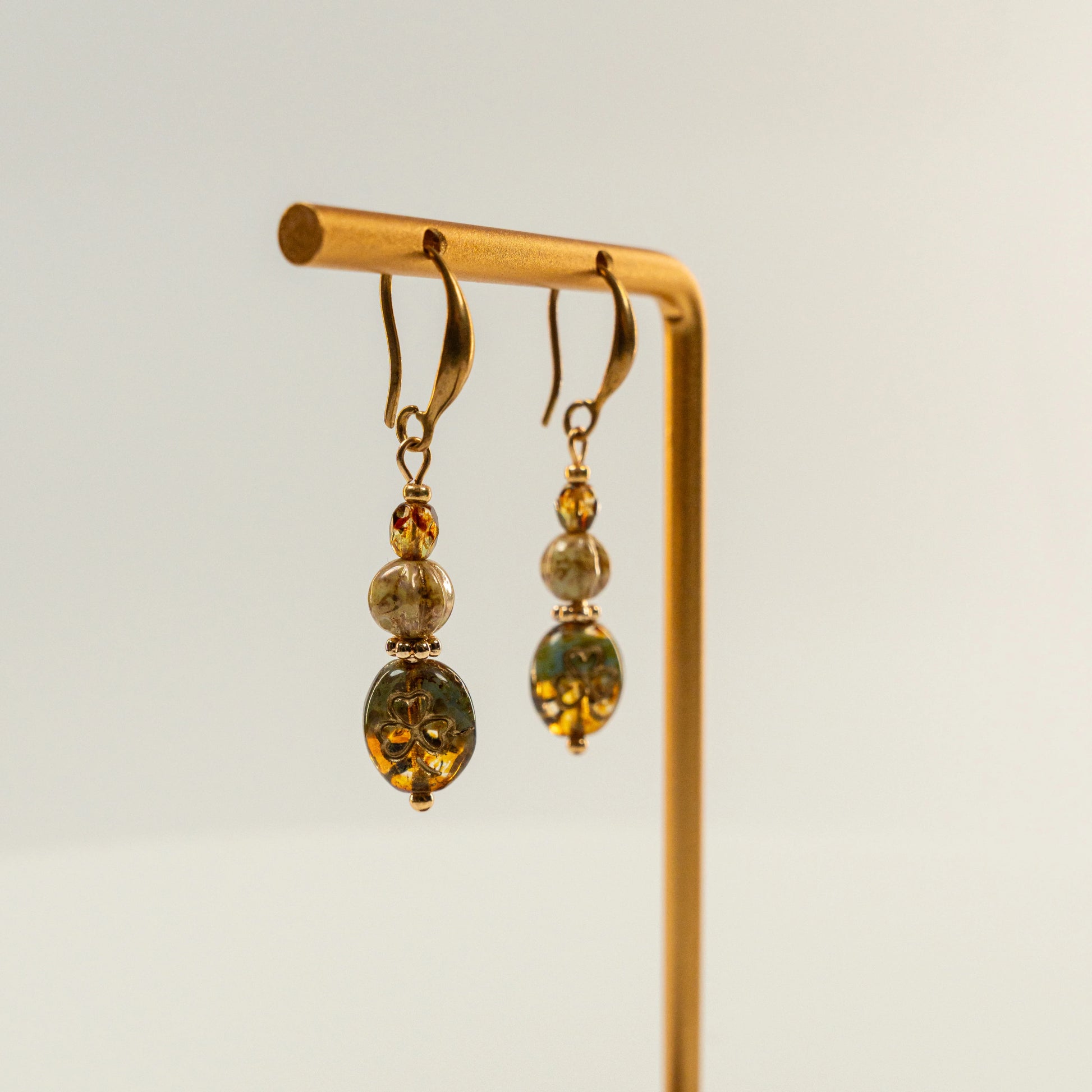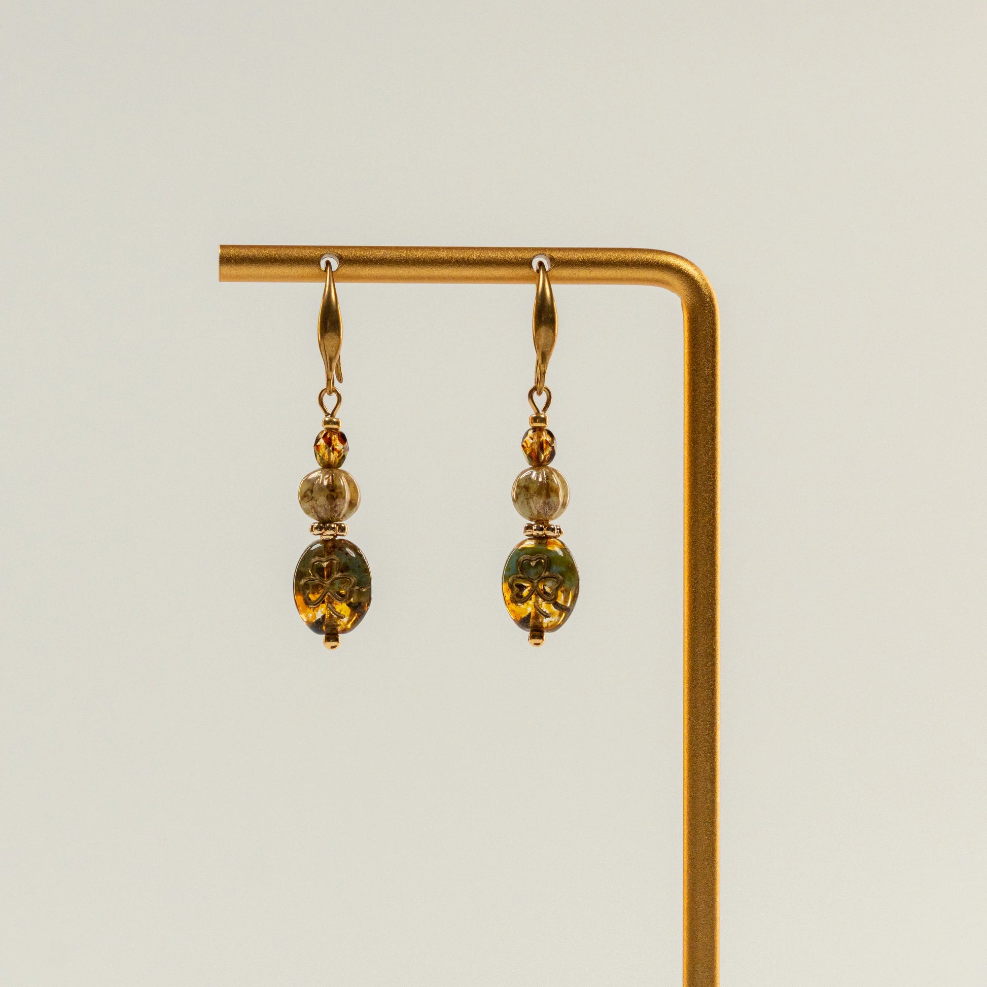 In gentle earth tones, these earrings feature a subtle clover motif, simple, natural, and quietly uplifting. A touch of everyday luck and warmth.
