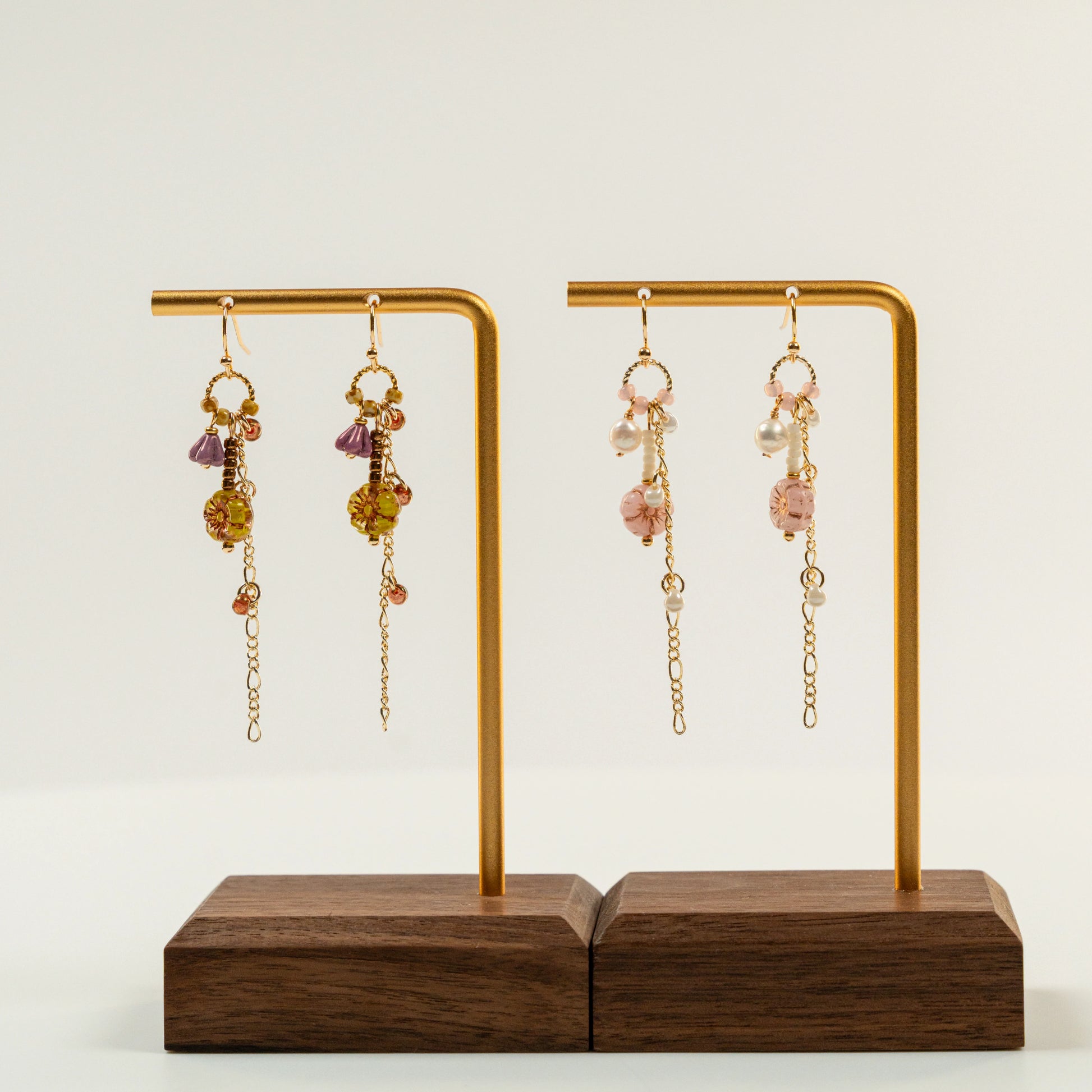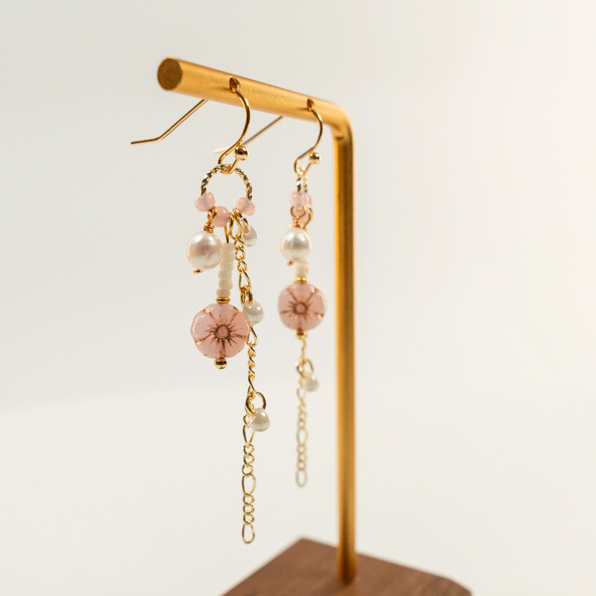 Materials: Czech glass beads, natural freshwater pearls, gold-plated silver hooks.